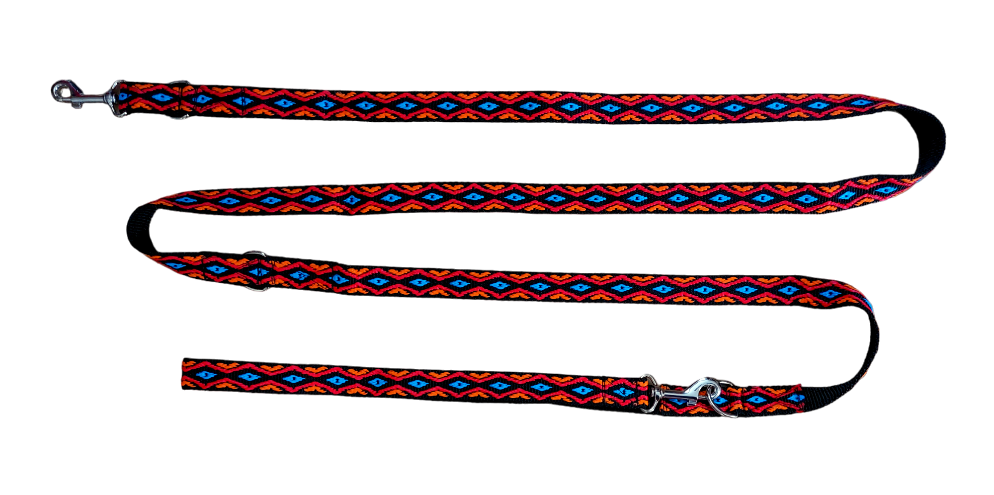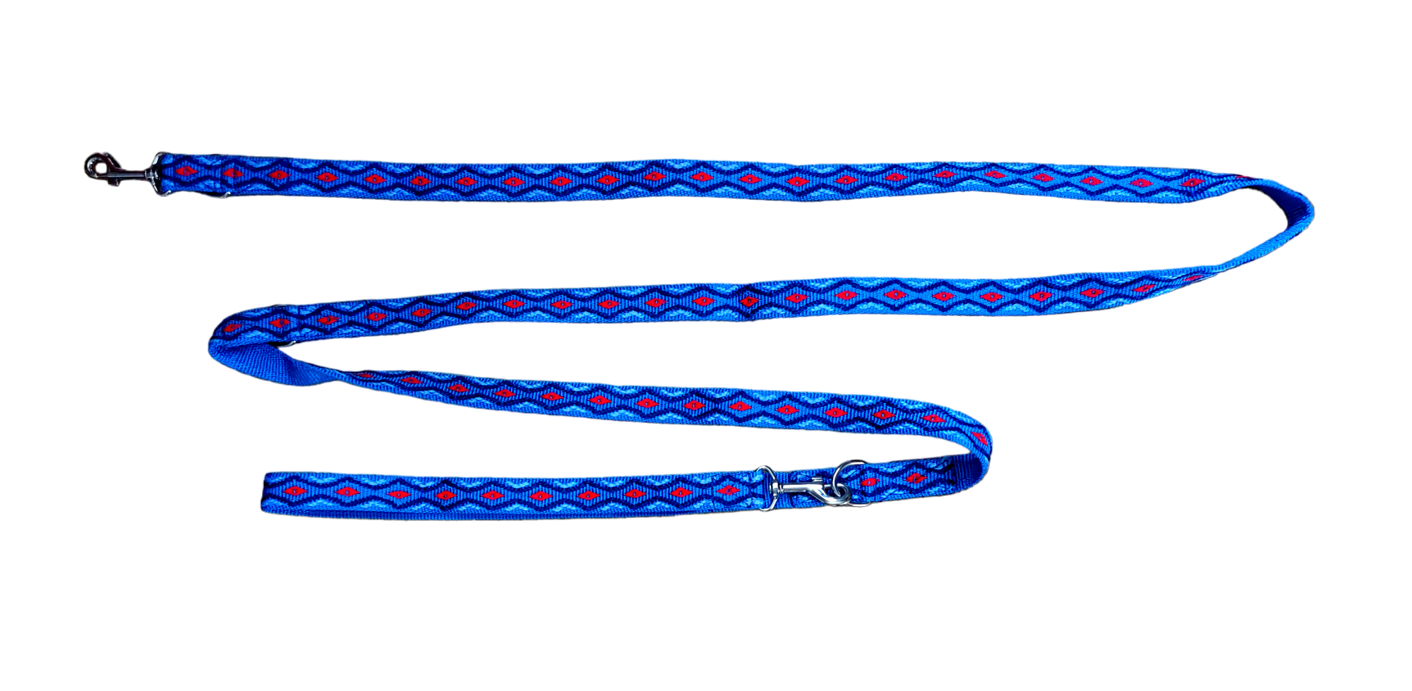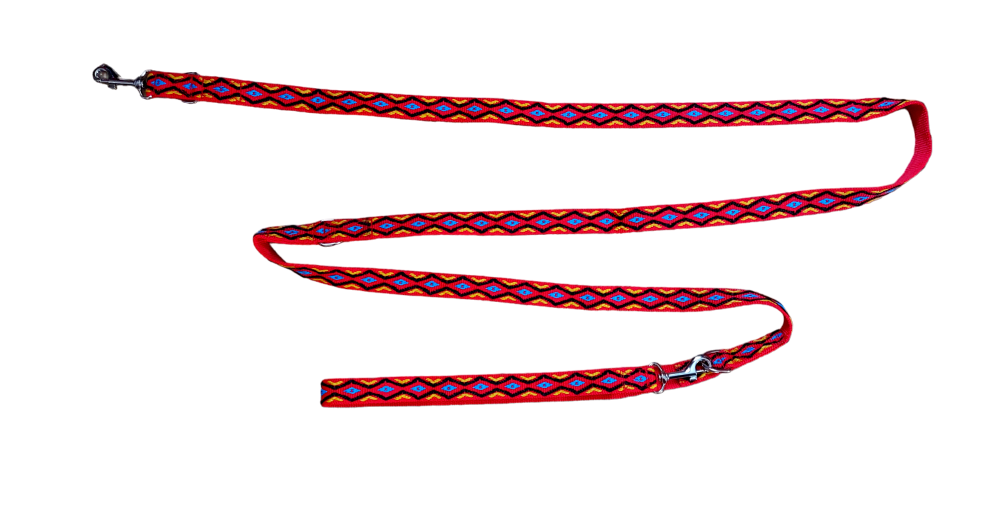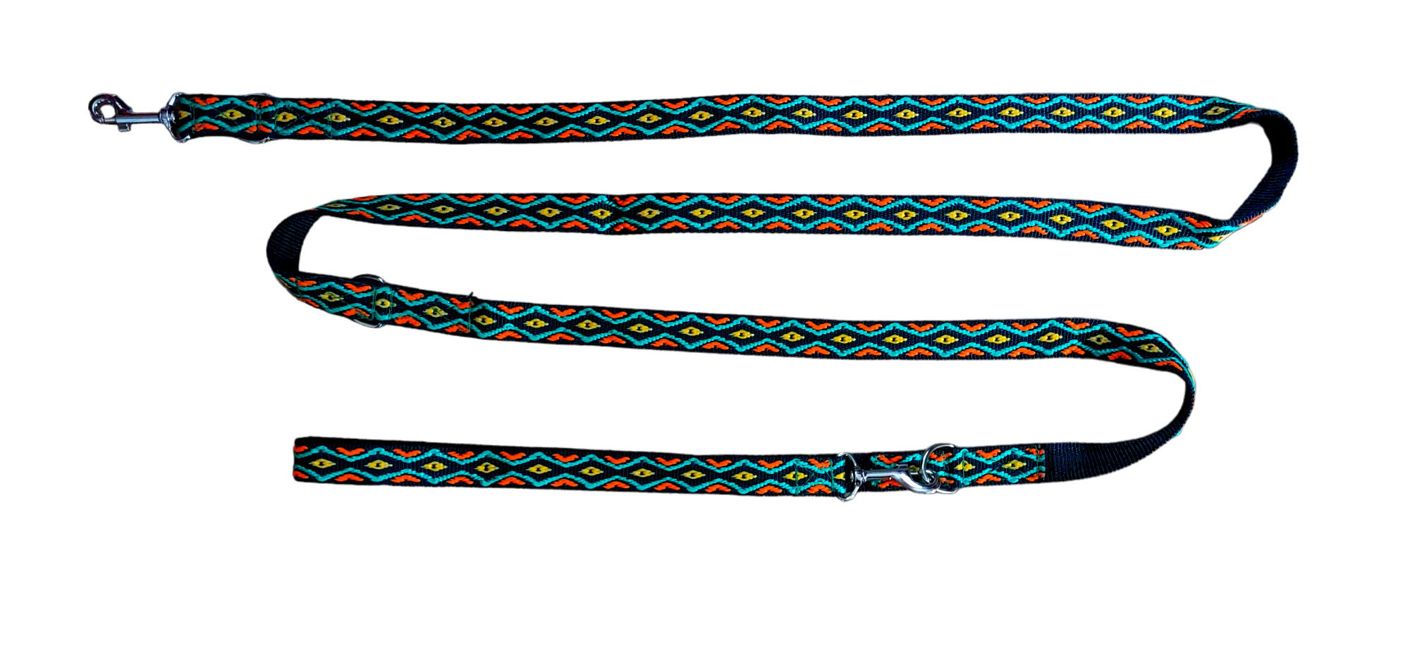 Smycz dla zwierząt hodowlanych. Smycz została wyprodukowana z przeznaczeniem dla alpak, kóz, owiec, krów i kucyków. Zrobiona z grubej taśmy nylonowej o szer. 25 mm. Bardzo mocna, wytrzymała o długości 3 m. Zakończona karabińczykiem z jednej i drugiej strony, z możliwością regulacji długości.