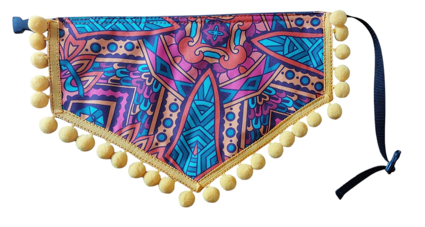 Kolorowa, wzorzysta chusta dla alpak. Praktyczna, zapinana na klamrę z możliwością regulacji. Dostępna w 4 wzorach. Łatwość zapięcia i regulacja stanowią priorytet od początku naszej pracy z alpakami i lamami. Chusty pięknie komponują się z naszymi innymi indiańskimi akcesoriami.