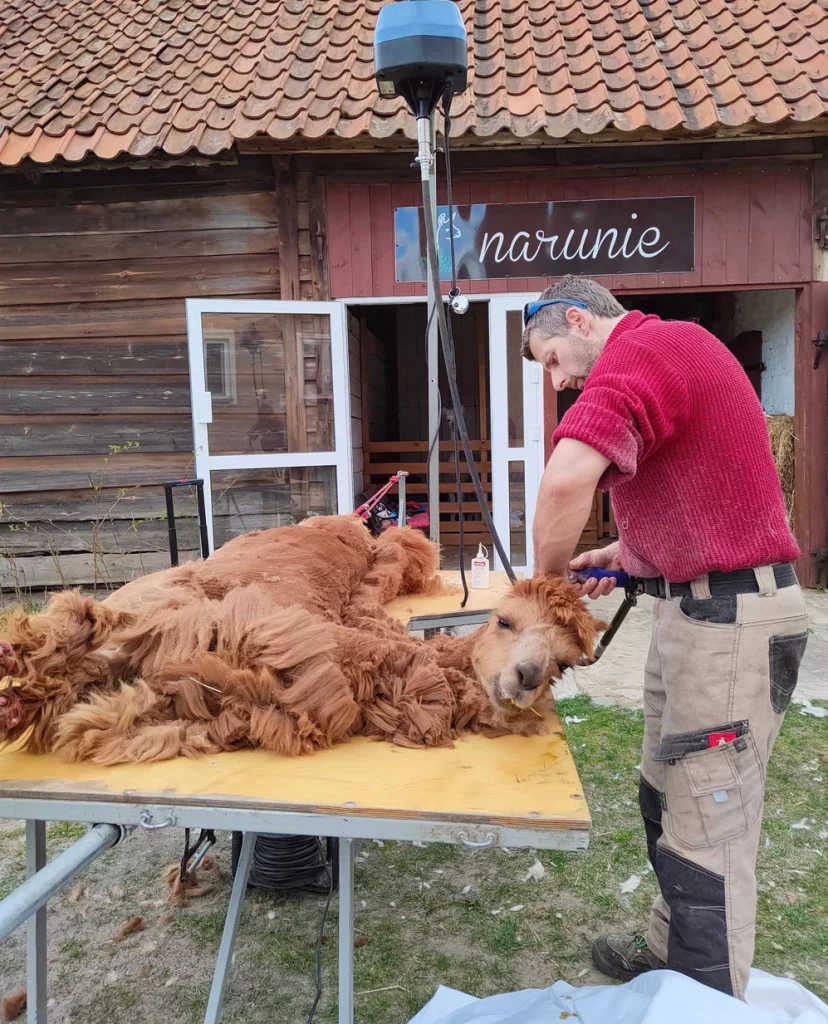 Strzyżenie jest dla alpak najważniejszym zabiegiem pielęgnacyjnym. Należy go wykonać raz w roku, wiosną.